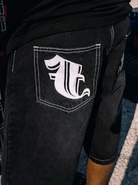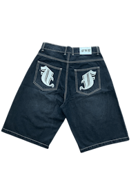 BLACK DENIM SHORT WITH GREY CONTRAST STITCHING