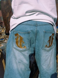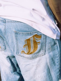 BLUE DENIM WITH TAN CONTRAST STITCHING