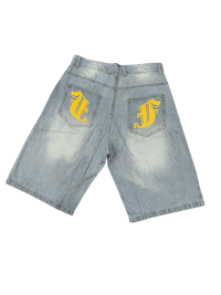 BLUE DENIM WITH TAN CONTRAST STITCHING